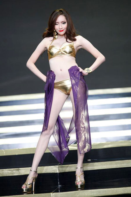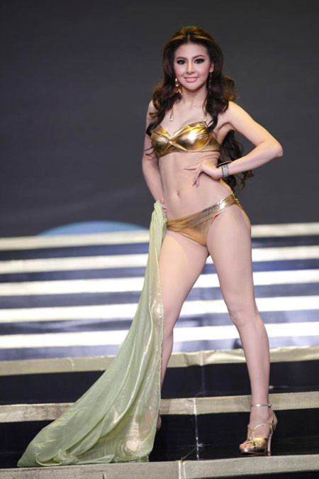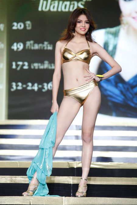 เก็บตกภาพบรรยากาศ การประกวด มิสแกรนด์ไทยแลนด์ 2013 เวทีนางงามในรอบการเดินโชว์หุ่นๆ สวยๆของเหล่าสาวงาม ในชุดว่ายน้ำ สีทองอร๊าอร่าม อวดหุ่นสวย ขับผิวให้ผ่อง ดูยังไงก็สวยเซ็กซี่ ชนะเลิศกันทุกคนซะเหลือบรรยายจริงๆ
