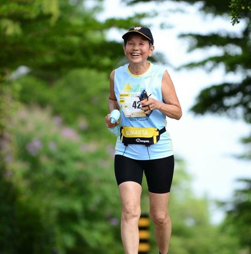 ป้านัน ในวัย 80 ปี ผู้ซึ่งถูกยกให้เป็น คุณป้ายอดนักวิ่ง กลายเป็นแรงบันดาลใจให้กับผู้คนมากมายให้หันมาสนใจการดูแลสุขภาพของตนเอง เป็นขวัญใจชาวนักวิ่งมาราธอนทั่วประเทศ โดยป้านัน เคยเปิดเผยว่า ตัวเองนั้นเพิ่งเริ่มวิ่งจริงๆในวัย 50 ปี หลังจากที่พบปัญหาสุขภาพของตัวเองและสามี ในขณะที่เริ่มวิ่งนั้น สามีของคุณป้าได้เสียชีวิตด้วยโรคเส้นเลือดหัวใจตีบในวันที่ทั้งคู่แยกย้ายกันไปออกกำลังกายตามปกติ หลังจากผ่านความเศร้าโศกอยู่ช่วงหนึ่งจนทำให้ป้านันคิดจะเลิกวิ่งแล้ว ป้านันกลับมามีกำลังใจอีกครั้งจากเพื่อนๆ ทำให้กลับมาวิ่งได้อีก ปัจจุบันป้านันผ่านการวิ่งมาราธอนมาแล้ว 53 ครั้ง นอกจากนั้น ป้านันยังบอกว่า ทุกวันนี้ถือว่าสุขภาพดีมาก ไม่ค่อยเจ็บไข้ได้ป่วย เพราะดูแลสุขภาพด้วยการออกกำลังกายอยู่เสมอ (ที่มาภาพจากwww.facebook.com/thaidotrun)