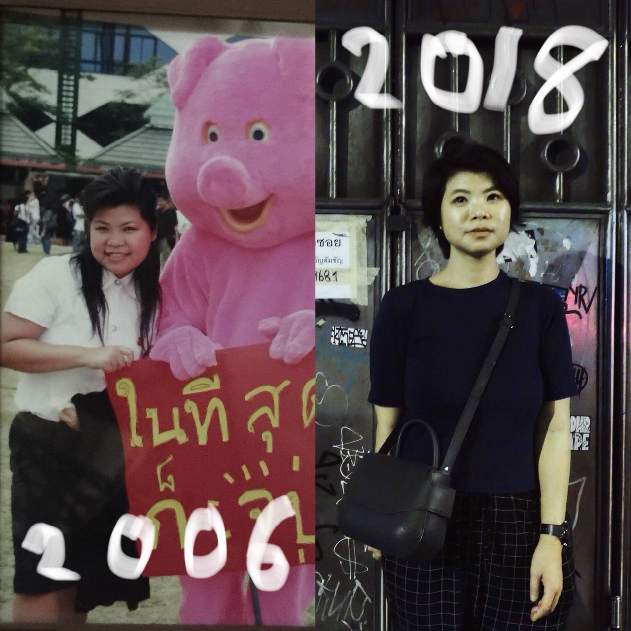 จุดเริ่มต้นที่ลดน้ำหนักมากจากปัญหาสุขภาพ ซึ่งเราไม่รู้ เรานึกว่าใครๆ ก็เป็นกัน คือประจำเดือนมาเยอะ แล้วมาครั้งละ 10 – 15 วัน ในปริมาณที่เยอะมากทุกวันและทั้งวัน จนกระทั่งวัยเลข 3 เริ่มมีอาการแทรกซ้อนอื่นๆ เพิ่มเติม จนต้องไปหาหมอสูติฯ เลยรู้ว่าฮอร์โมนผิดปกติ คุณหมอให้ยาฮอร์โมนมากิน แล้วมีผลข้างเคียงเยอะ ทั้งคลื่นไส้ อาเจียน และดราม่า อ่อนไหวง่าย เปลี่ยนยาก็แล้ว เปลี่ยนวิธีกินก็แล้วก็ยังมีอาการอยู่ คุณหมอเลยแนะนำให้ลดน้ำหนัก จะได้ลดปริมาณยา และอาจจะงดยาไปเลยก็ได้ ความหวังเริ่มมา