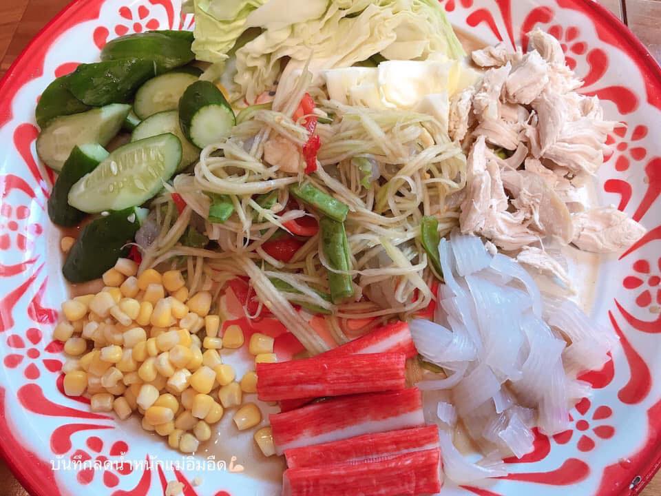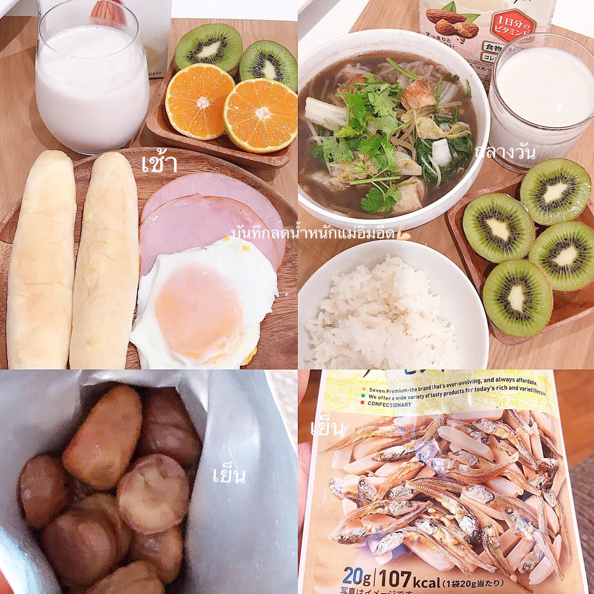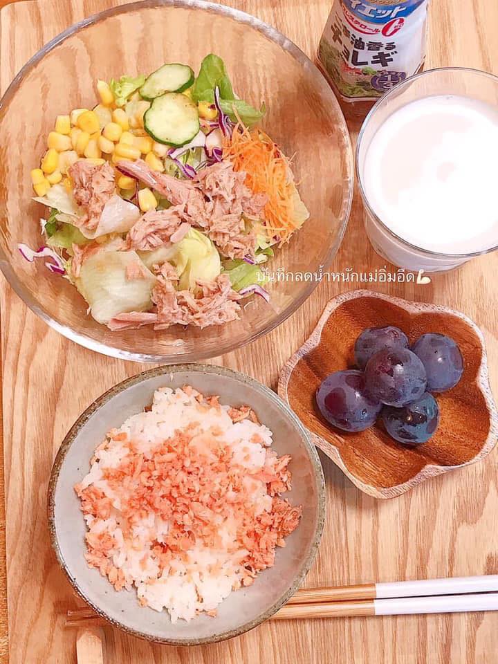 กินข้าวขาว ตักเท่าถ้วยญี่ปุ่น เช้าต้องมีข้าว กลางวันก็มี ลดปริมาณเอา (แต่ก่อนกินเป็นจานๆพูนๆ 2 จาน) ตอนเย็นบางวันก็มีข้าวนะคะ แต่นิดหน่อย เพราะออกกำลังกายเล่นเวทต้องกิน เน้นสันในไก่ เนื้อ,หมู (อาจมีติดมันบ้างแต่นิดๆ) ไข่ ปลา ผักผลไม้ทั่วไป นมอัลมอนด์ น้ำเปล่าเท่านั้น ปลาดิบจะกินบ่อยค่ะ ไขมันน้อย เมนูทำเอามั่วๆไปเรื่อยค่ะ ต้มกับนึ่งจะเยอะ ส้มตำก็กิน ปรุงปกติแต่ไม่ซดน้ำค่ะ