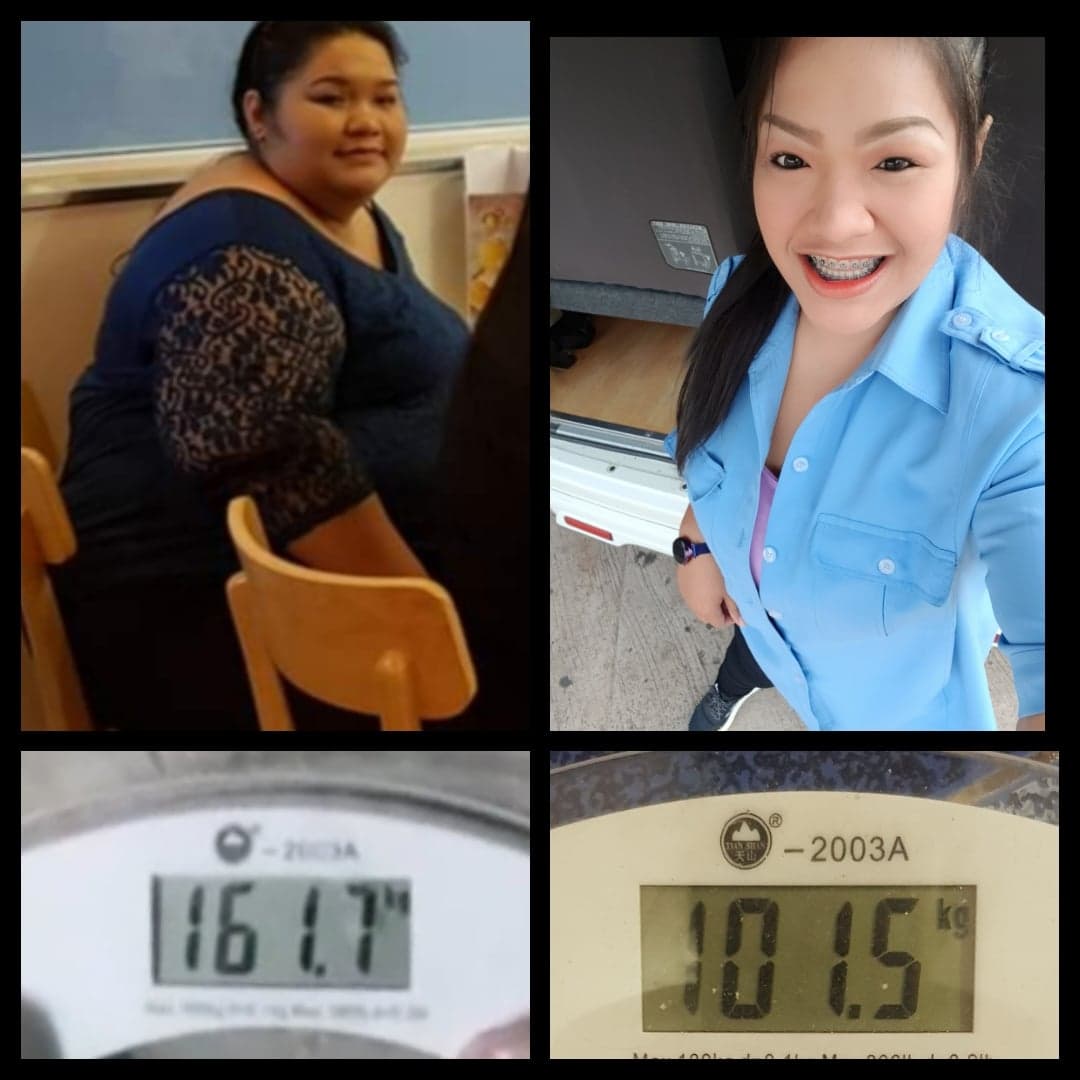 จากวันนั้นจนถึงวันนี้ ผ่านมาแล้วกว่า 18 เดือน คุณจอยลดน้ำหนักไปได้ 70 กก. มีท้อบ้างแต่ไม่เคยหยุด ทุกครั้งที่น้ำหนักนิ่ง จะพยายามเปลี่ยนรูปแบบการออกกำลังกาย และปรับอาหาร เพื่อเป็นการหลอกร่างกาย