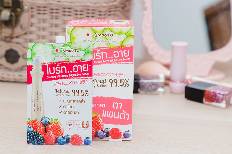 หลายคนคงอยากให้ปัญหา ตาแพนด้า หายไวๆ ซึ่งวิธีแก้ก็มีหลากหลาย เช่น บำรุงด้วยแตงกวา และว่านหางจระเข้ แต่ วิธีแก้ขอบตาดำ เหล่านี้อาจยุ่งยากสำหรับบางคน ซึ่งปัจจุบันมีอีกหนึ่งทางเลือกง่ายๆ ด้วย สมูทโตะ ไวต้า เบอร์รี่ ไบร์ท อาย เซรั่ม ที่มีคุณสมบัติในการ แก้ตาแพนด้า ให้กระจ่างใสขึ้น ที่สำคัญสามารถใช้ทาใบหน้าและริมฝีปากได้ด้วย ประโยชน์ครบขนาดนี้มาดูส่วนผสมกันหน่อยดีกว่า
