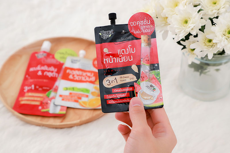 ดีดีคุชชัน ครีม ช่วยปกปิดจุดด่างดํา ร่องลึก ให้ผิวสว่างใสอมชมพูอย่างเป็นธรรมชาติ พร้อมปกป้องผิวจากรังสี UVA/UVB ให้หน้าไม่หมองระหว่างวัน พร้อมบํารุงลํ้าลึกด้วยสารสกัดจากแตงโม คอลลาเจน ไฮยาลูรอน ที่ช่วยให้ผิวนุ่มชุ่มชื่น เรียบเนียน กระชับ