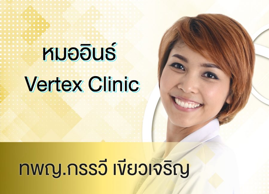 คุณหมออารมณ์ดีที่ทั้งสวยและเก่งอีกคนของ Vertex Clinic ที่มีฝีมือการผ่าตัดขากรรไกรไม่น้อยหน้าฝีมือการร้องเพลง เพราะมีซิงเกิ้ลเพลงเป็นของตัวเองมาแล้ว โดยคุณหมออินธ์เป็นแพทย์ผู้เชี่ยวชาญด้านศัลยกรรมช่องปากและใบหน้าขากรรไกร ที่มากความสามารถ ถ้าใครสนใจอยากผ่าตัดขากรรไกรที่ปลอดภัย ได้มาตราฐานกับคุณหมอต้องที่ Vertex Clinic ศูนย์รวมความงามที่รวมทั้งทันตกรรมผิวพรรณ และศัลยกรรมไว้ด้วยกัน