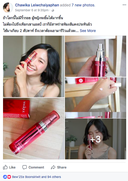 “หลังจากที่ฟางทดลองใช้มาเกือบ 2 อาทิตย์ ให้ความรู้สึกว่านางช่วยลดรอยแดงจากสิวได้ค่อนข้างดีเลยค่ะ ผิวดูกระจ่างใสขึ้นด้วย เนื้อครีมนางออกสีชมพูอ่อนๆ ทาง่ายเกลี่ยง่าย แพ็คเกจสวยดูหรูหรามากเว่อร์! เดี๋ยวถ้าใช้หมดขวดแล้วจะซื้อให้คุณแม่ใช้ต่อ”