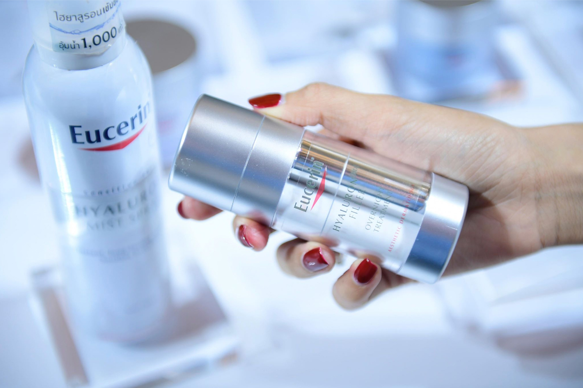 Eucerin ผู้นำด้านผลิตภัณฑ์เวชสำอางความงามอันดับหนึ่ง ที่ได้รับความไว้วางใจและเป็นที่แนะนำของแพทย์ผู้เชี่ยวชาญด้านผิวหนังทั่วโลก เปิดตัวผลิตภัณฑ์ Eucerin Hyaluron HD Filler Overnight Treatment ครั้งแรกของโลกกับนวัตกรรมใหม่ล่าสุดจากยูเซอรีน ที่ได้ผสาน 2 สารทรีทเม้นท์ ที่เป็นที่นิยม ใช้ได้ผลจริง และแพทย์ผิวหนังนิยมใช้ อย่าง AHA Complex ที่สามารถเร่งการผลัดเซลล์ผิวคล้ำเสียได้อย่างอ่อนโยน ทำให้สามารถลดจุดด่างดำตามวัย เผยผิวใหม่ที่นุ่มเนียน กระจ่างใส และเปล่งประกาย และ HD Filler ฟิลเลอร์เนื้อเข้มข้นที่อัดแน่นด้วยไฮยาลูรอนิก แอซิด ทั้งโมเลกุลขนาดเล็กและใหญ่ เพื่อการเติมร่องลึกและริ้วรอยได้ทุกระดับ โดยได้ทดสอบแล้วว่าเมื่อทั้งสองทำงานพร้อมกันจะได้ประสิทธิภาพสูงสุด