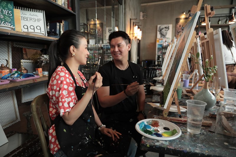 พร้อมเหล่าเซเลบริตี้คู่รัก อาทิ ภัทร จึงกานต์กุล, จุ้มจิ้ม วรนันท์ จันทรัศมี, ต้น เดิมพัน และ เมย์ เมลนีย์ อยู่วิทยา ที่มาร่วมเวิร์คช็อปเพ้นท์ภาพสีน้ำ เพื่อสร้างสมาธิที่ร้านเพ้นท์บาร์ แบงค็อก (Paintbar Bangkok)