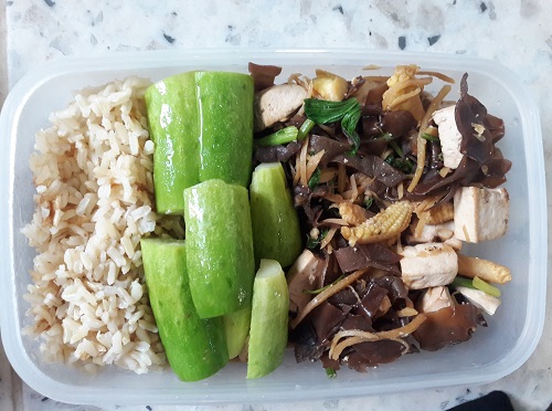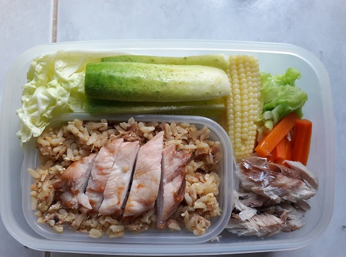 นอกจากออกกำลังกายแล้ว เรื่องอาหารเราก็ปรับใหม่หมด ทำอาหารกินเอง เริ่มด้วยการทำข้าวกล่องไปทานที่ทำงาน พยายามทำให้คลีนๆ เข้าไว้ ส่วนมื้อเช้าเราจะทานข้าวปกติ บางวันก็เป็นนมต้มกับข้าวโอ๊ต มื้อเย็น ก็ทานพวกโปรตีน อกไก่ย่าง ปลานึ่ง อะไรทำนองนั้น แต่เราจะงดแป้งในมื้อเย็น งด มัน หวาน เค็ม ของทอด น้ำหวาน ของหวาน เราทานบ้างนานๆ ครั้ง น้อยๆ พอให้ร่างกายไม่โหยหาจนเกินไป