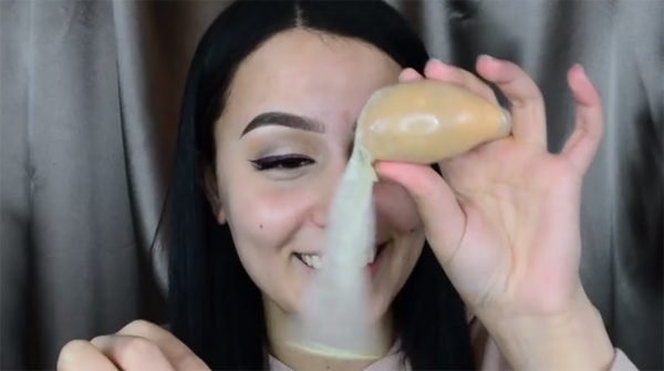 กลายเป็นเทรนด์ใหม่ที่เหล่าบล็อกเกอร์คนดังทำคลิปออกมาทดลองกันเยอะมาก สำหรับการใช้ ถุงยางเกลี่ยรองพื้น โดยใช้ถุงยางใหม่ ไปล้างทำควมสะอาดให้เรียบร้อย แล้วนำมาตัดปลายส่วนที่ยาวออกไป หลังจากนั้นก็ยัดฟองน้ำรูปไข่ลงไป เทคนิคนี้แก้ปัญหาฟองน้ำกินเนื้อรองพื้นได้ดี แถมยังเกลี่ยได้เรียบเนียนสุดๆ ข้อสังเกตที่เห็นชัดคือ ถึงแม้ว่าจะเป็นบล็อกเกอร์ต่างชาติ แต่ทุกคนก็มีอาการเขินอายที่จะต้องนำถุงยางมาใช้บนผิวหน้าของตัวเอง ไม่รู้ว่าเทคนิคการแต่งหน้าแบบนี้ สาวไทยจะกล้าทำหรือเปล่าน๊า