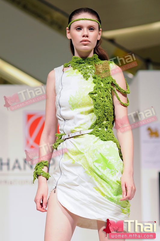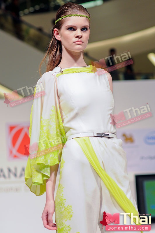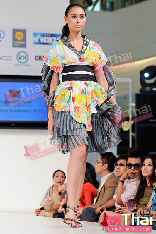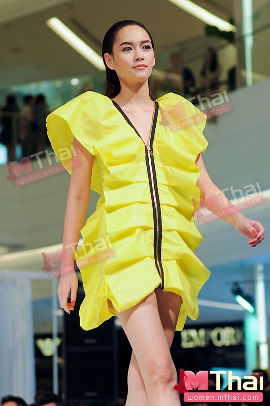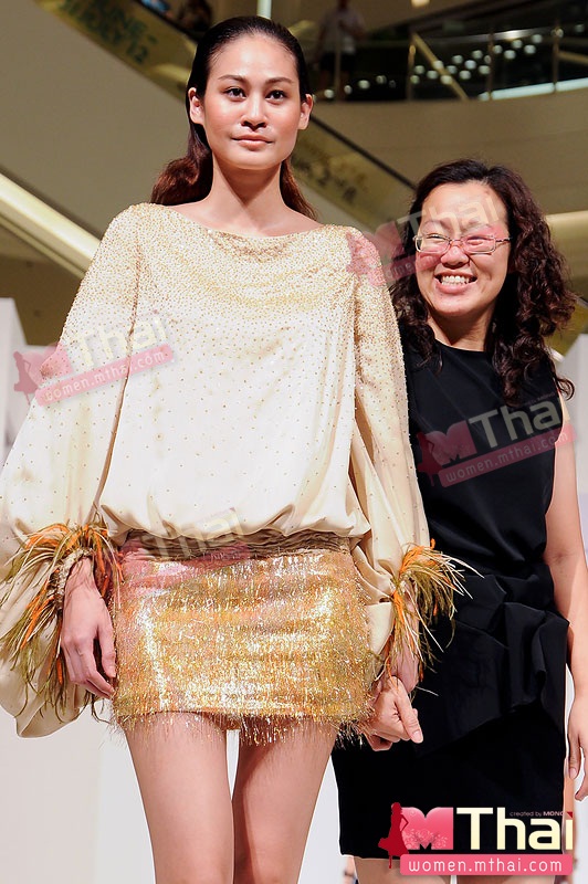 สำหรับนางแบบชั้นนำ บี-น้ำทิพย์ จงรัชตวิบูลย์ มาในชุดสีสันสดใสของ สิรินทร์ศิริพิริยะกุล กับผลงาน “The Butterfly Effect” คอลเลคชั่นที่นำคำนิยามของทฤษฎี The Butterfly Effect “เมื่อผีเสื้อขยับปีกสะเทือนไปถึงอีกซีกโลก” มาเป็นแรงบันดาลใจในการออกแบบ