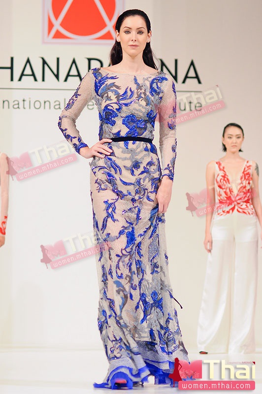 ส่วนนักแสดงชื่อดัง นุ่น-ศิรพันธ์ วัฒนจินดา ปรากฏตัวในชุดราตรีพริ้วสีม่วงในคอลเลคชั่น “Spirit of the Ramakien” ซึ่ง นันตรีดา มอร์ ได้นำภาพจิตรกรรมฝาผนังเรื่องรามเกียรติ์หลอมรวมเข้ากับชุดราตรีที่ทันสมัย สะท้อนให้เห็นความเป็นไทยร่วมสมัยสู่โลกของงานพรมแดง