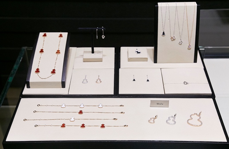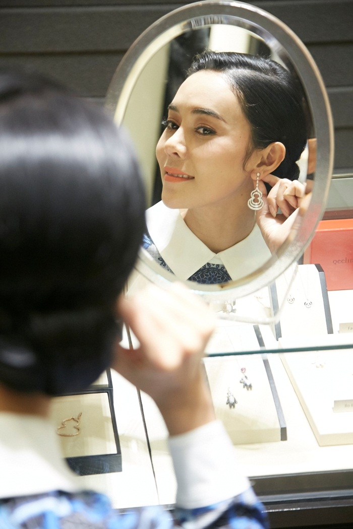 ต่อมาที่สาวสังคม ยุวเรต ศรุตานนท์ เจ้าของธุรกิจเครื่องสำอางแบรนด์ดัง ที่ชื่นชอบเครื่องประดับรูปทรงน้ำเต้าจากคอลเลกชั่น ‘วู ลู’ (Wu Lu) เผยว่า โดยส่วนตัวแล้วจะเลือกเครื่องประดับตามความเหมาะสมของการแต่งตัว ‘สำหรับเราเครื่องประดับชิ้นที่ขาดไม่ได้เลยคือต่างหู เพราะมันเป็นชิ้นที่อยู่ใกล้ใบหน้าที่สุด ซึ่งจะช่วยเสริมเสน่ห์ให้เราได้มากยิ่งขึ้น โดยเราจะชอบเครื่องประดับที่ทำจากเพชรเป็นส่วนใหญ่ เพราะโทนสีของเพชรจะสามารถเข้ากับเสื้อผ้าได้ง่าย ซึ่งชิ้นที่เราชอบเป็นพิเศษก็คือต่างหูรูปน้ำเต้า ด้วยดีไซน์ที่มีความร่วมสมัย และความหมายที่แปลว่าโชคดี สามารถเพิ่มความมั่นใจให้เราได้ทั้งความงามภายนอกและความรู้สึกภายใน รวมถึงความหมายของเครื่องประดับชิ้นนี้ยังค่อนข้างสอดคล้องกับการทำธุรกิจของเราที่สามารถเติบโตได้ดีแม้จะเป็นเพียงธุรกิจแรกที่เริ่มทำ