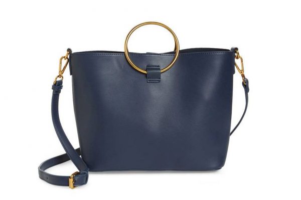 Ring Handle Faux Leather Tote & Zip Pouch – $68