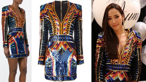 ดีไซน์และสีสันของชุดเดรสปักเลื่อมตัวนี้ โดดเด่นมากจริงๆ ชุดจาก Balmain แบรนด์ดังฝรั่งเศส