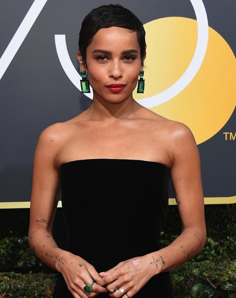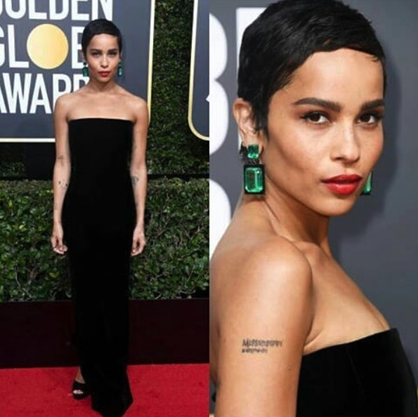แฟชั่นเดรสยาวสีดําสุดเรียบหรูของสาว Zoe Kracitz นั้น จาก SAINT LAURENT