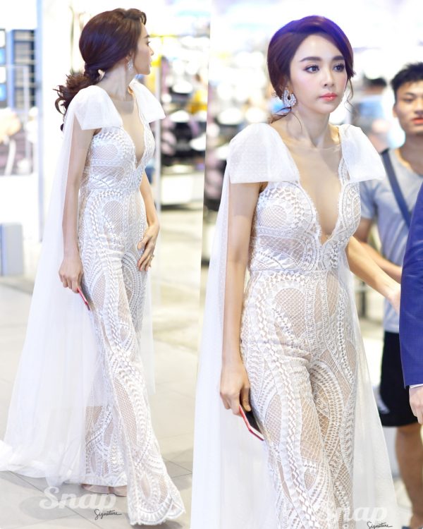ไม่น่าเชื่อว่าสาวเอ๋ จะเป็นขุ่นแม่ลูก 2 แล้ว เพราะผิวและหุ่นเธอยังดีมาก ดูแลดูเแองได้ดีสุดๆ ลุคนางฟ้าของเธอวันนี้ทำเอาลืมภาพนางเอกสายตบในจอไปเลย กับความใสออร่า มาในชุดเดรสลูกไม้สีครีมเข้ารูปแถมสียังเข้ากับผิวจนแยกกันไม่ออก มีระบายที่ชายกระโปรงเพิ่มความหวาน แมทช์กับรองเท้าส้นสูงหัวแหลมสีครีม แต่มีความโดดเด่นด้วยสีปากอมชมพู อ่อนหวานและผมทรงบับเบิ้ล มัดสูง น่ารักสายแบ๊วเอามากๆเลยจร้าาาาแม่เอ๋