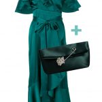 เดรสสีเขียวกระโปรงทรงดินสอ ผ่าหน้า สวยสง่าแมทช์กับกระเป๋าและรองเท้าส้นสูวิบวับเล่นแสงสุดๆ
