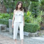 2. เสื้อสายเดี่ยว เสื้อครอป + กางเกงขายาว