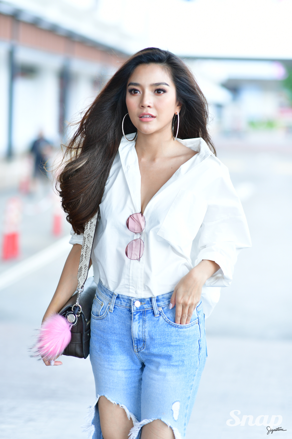 3. เชิ้ตขาวตัวโคร่ง + ยีนส์ขาด