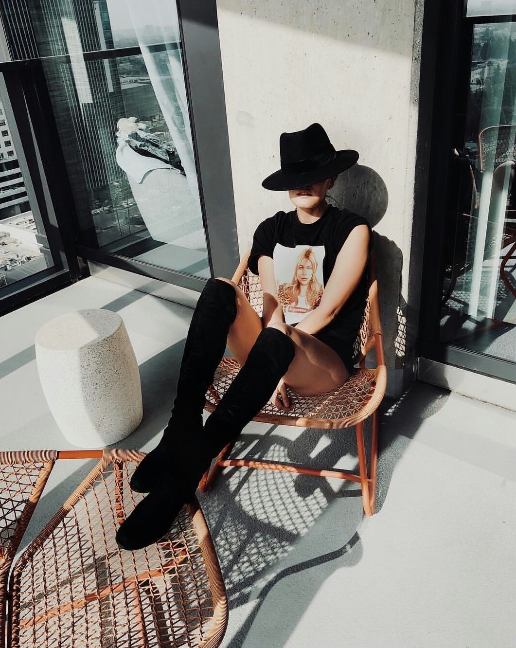 7. เน้นรองเท้า รองเท้าก็มีส่วนสำคัญมากในการเปลี่ยนลุคของสาวๆ ลุคนี้คือเธอแอบเพิ่มดีกรีความแซ่บตรงที่แมทช์กับรองเท้าบู้ทหุ้มข้อและรองเท้าบู้ทยาวสูงแนบเนื้อ ซึ่งเป็นไอเทมเด็ดจากแบรนด์ Balenciaga (80MM KNIFE SPANDEX OVER THE KNEE BOOTS)