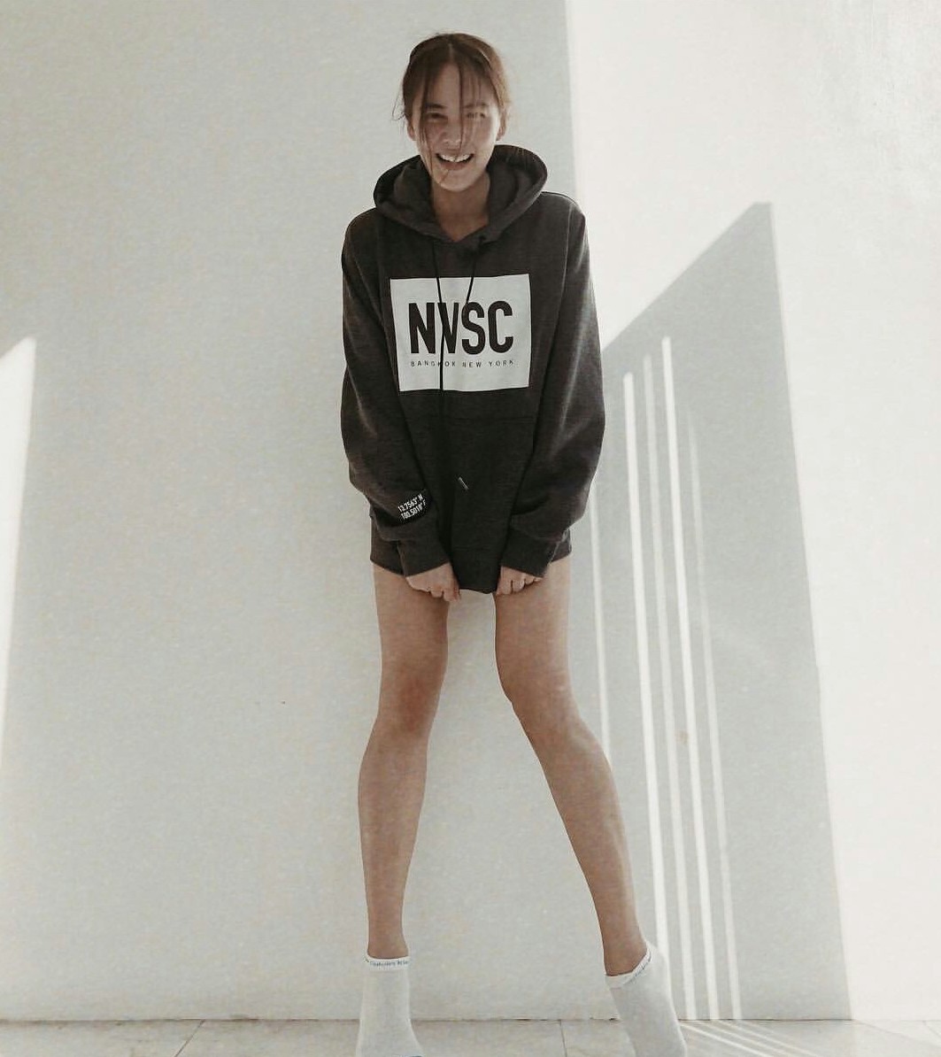 6. Sport Look ( Sport Oversized+เสื้อฮู้ด Hoodie) ถ้าอยากเป็นสาว Sport Girl ก็แค่เลือกทรงของเสื้อผ้าให้เป็นแบบ Sport Oversized พิมลายตัวหนังสือเท่ ๆ ก็ได้ ถ้าต้องการความเท่ให้แมทช์กับรองเท้าผ้าใบ แต่ถ้าอยากเป็นเซ็กซี่ซุปตาร์ ต้องแมทช์ด้วยบู้ทยาวสีดำ เริ่ดสุด! หรือใส่แค่ฮู้ดสักตัวก็เซ็กซี่ ชิคๆแบบสาว Sport ได้อีกลุค ดูเท่ทะมัดทะแมง เหมาะกับอากาศที่ค่อนข้างเย็นในช่วงนี้