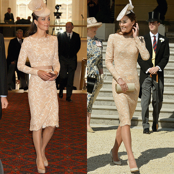 เจ้าหญิงกับเดรสผ้าลูกไม้สีนู้ดแบรนด์ Alexander McQueen ลุคนี้ห่างกัน 2 ปี ทั้งกระเป๋า และหมวกที่ต่างกัน กับกิมมิคเล็กน้อยๆ ของเข็มขัดริบบิ้น