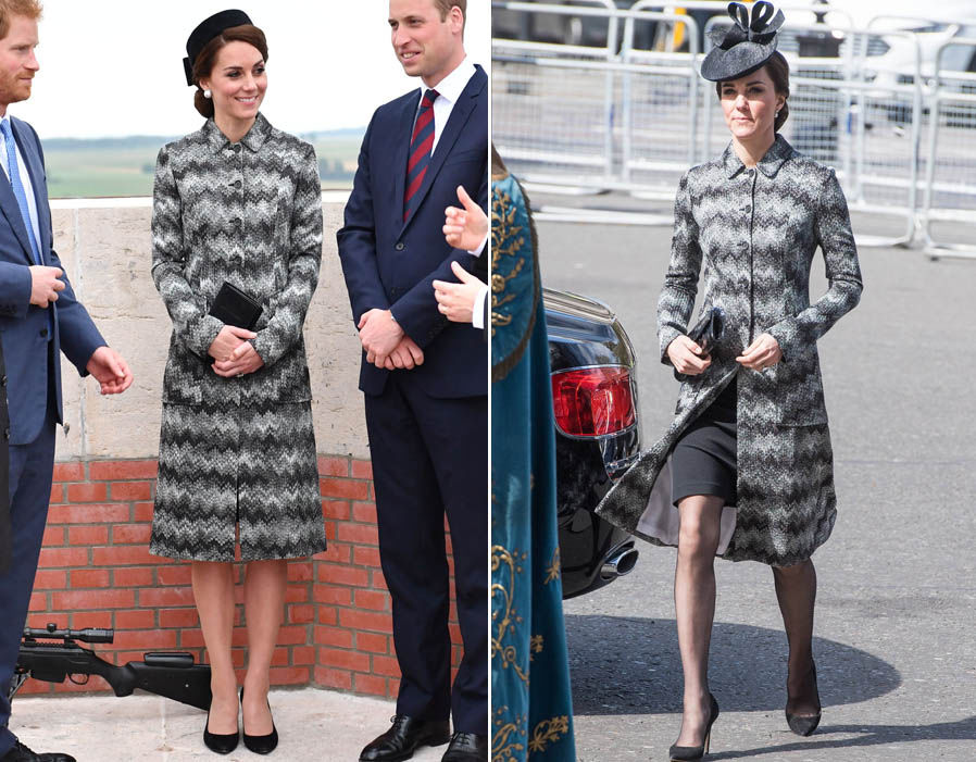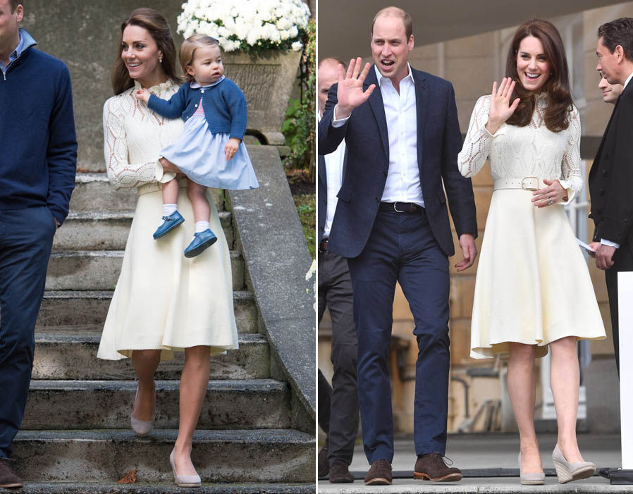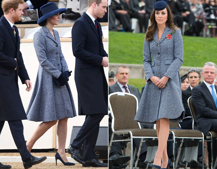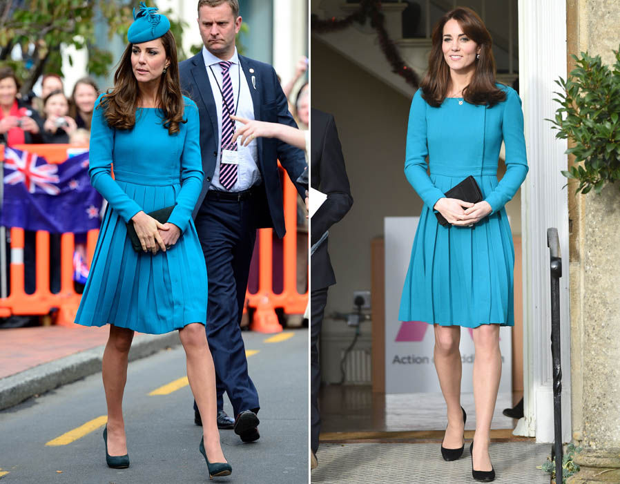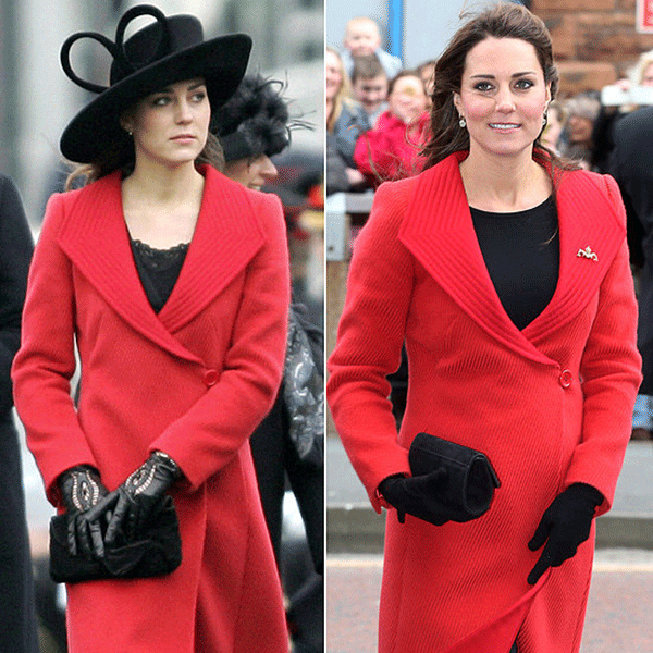 เจ้าหญิงเคทเคยใส่ชุดเดรสสีแดงนี้ซ้ำกัน 2 ครั้ง ครั้งแรกเจ้าหญิงเคทนำหมวกและเข็มกลัดมาเพิ่มดีเทลความน่าสนใจให้กับชุด ส่วนครั้งที่ 2 มาในลุคสบายๆ