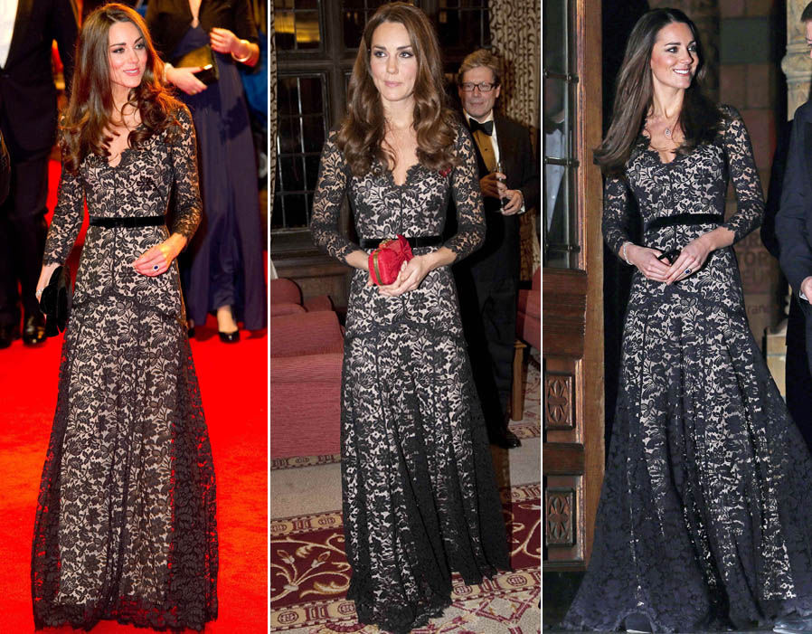เจ้าหญิงกับชุดราตรีผ้าลูกไม้สีดำแบรนด์ Temperley ที่ทรงห่างกันร่วมปี แต่เป็นงานอีเว้นท์ใหญ่ทั้งคู่ คือเปิดตัวภาพยนตร์ War Horse รอบพรีเมียร์ และงานเลี้ยงพระกระยาหารค่ำที่ St.Andrews