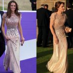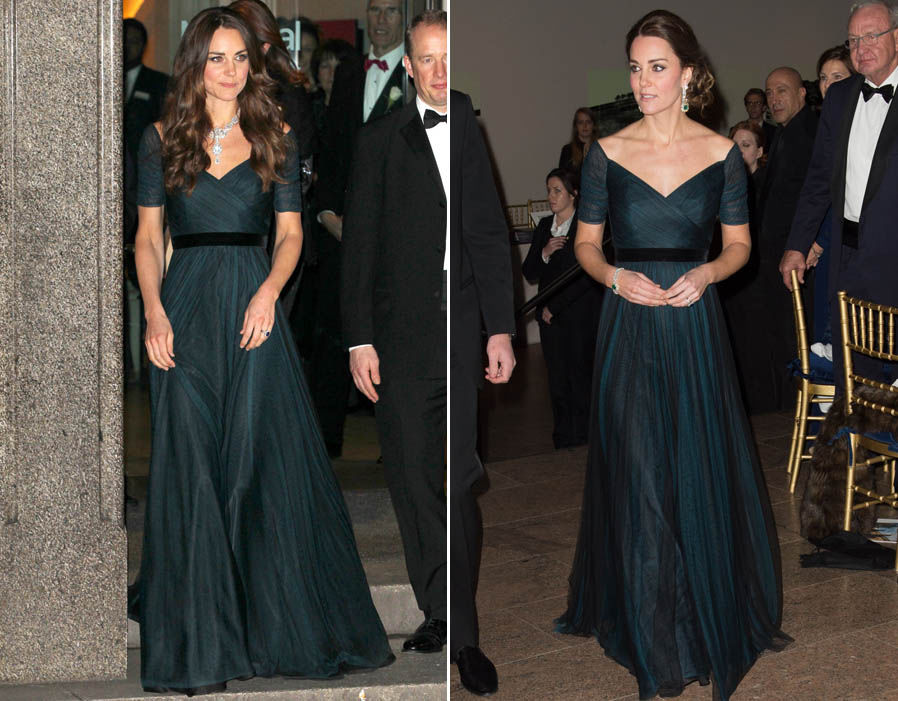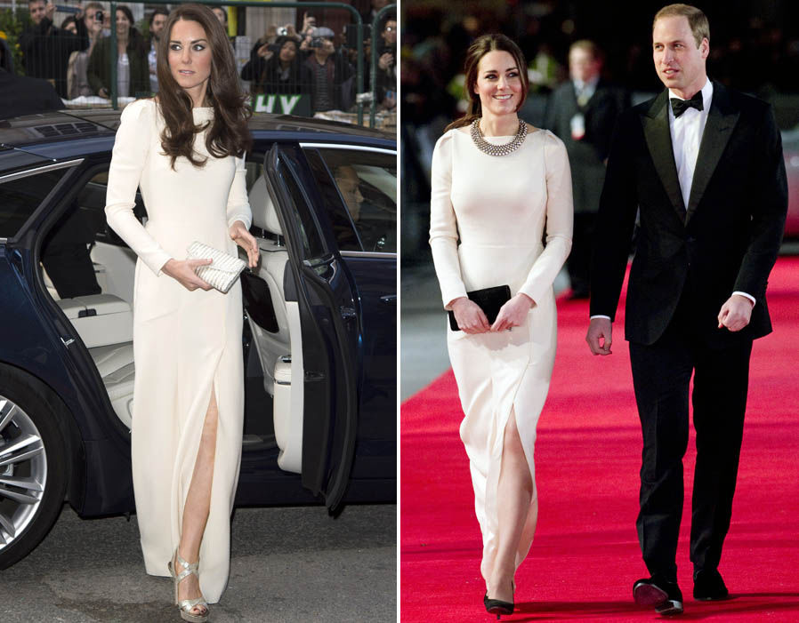 ชุดราตรี จาก Roland Mouret เจ้าหญิงเคททรงหยิบมาใส่ซ้ำ ห่างกันประมาณ 1 ปี ชุดเดิม เปลี่ยนกระเป๋า รองเท้า เพิ่มสร้อยคอรวบผมอีกสไตล์ก็ดูเปลี่ยนแล้ว