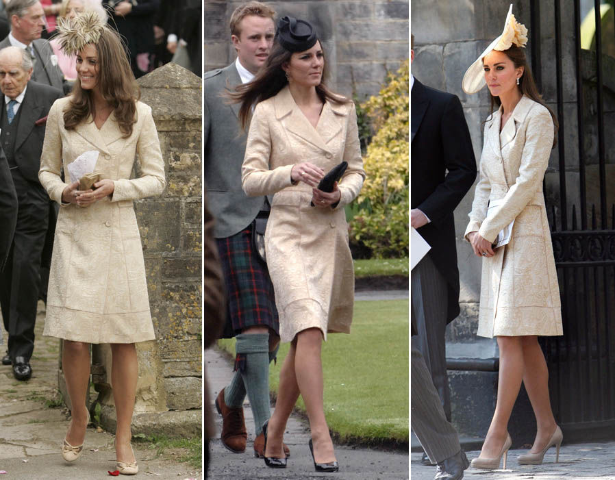 ชุดเดรสสีครีม ลายก้นหอย เจ้าหญิงเคทใส่บ่อย พอๆ กับชุดเดรสสีขาวจากแบรนด์ Alexander McQueen เลย โดยครั้งแรกใส่มาร่วมงานแต่งงานของลอร่า ปาร์กเกอร์โบว์ลส์ และแฮร์รี่ โลเปซ ในปี 2549 ก่อนที่เธอจะกลายเป็นภรรยาของเจ้าชายวิลเลี่ยม ต่อมาแคทเธอรีนได้ปรากฏตัวต่อหน้าสาธารณชนในชุดนี้อีกครั้งในปี 2011 และครั้งที่สามในปี 2016 โดยแต่ละครั้งเจ้าหญิงเคทก็จะเลือกกระเป๋าคลัทช์ หมวก และเครื่องประดับที่แตกต่างกันออกไป ทำให้ชุดนี้กลับมาเป็นชุดใหม่ทุกครั้งเมื่อถูกสวมใส่