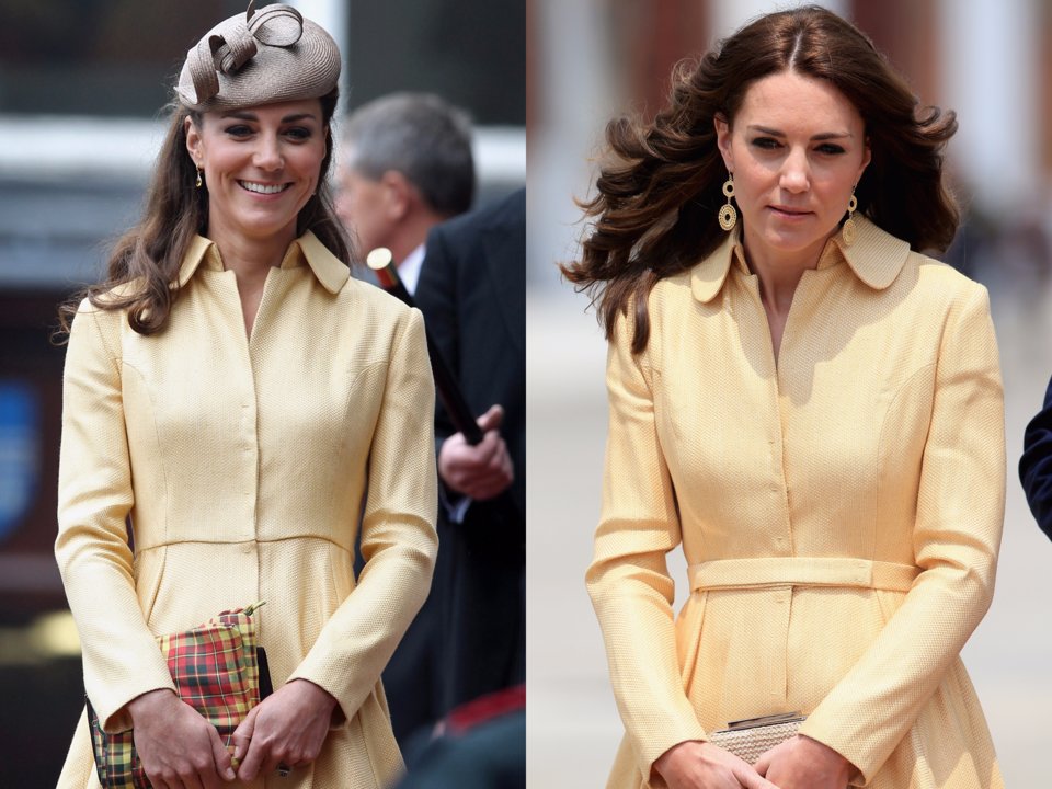 ดัชเชสเคยสวมเสื้อคลุมสีเหลืองนี้ในปี 2012 และเลือกกลับมาใส่ใหม่ครั้งเดินทางเยี่ยมชมภูฏาน ในปี 2016