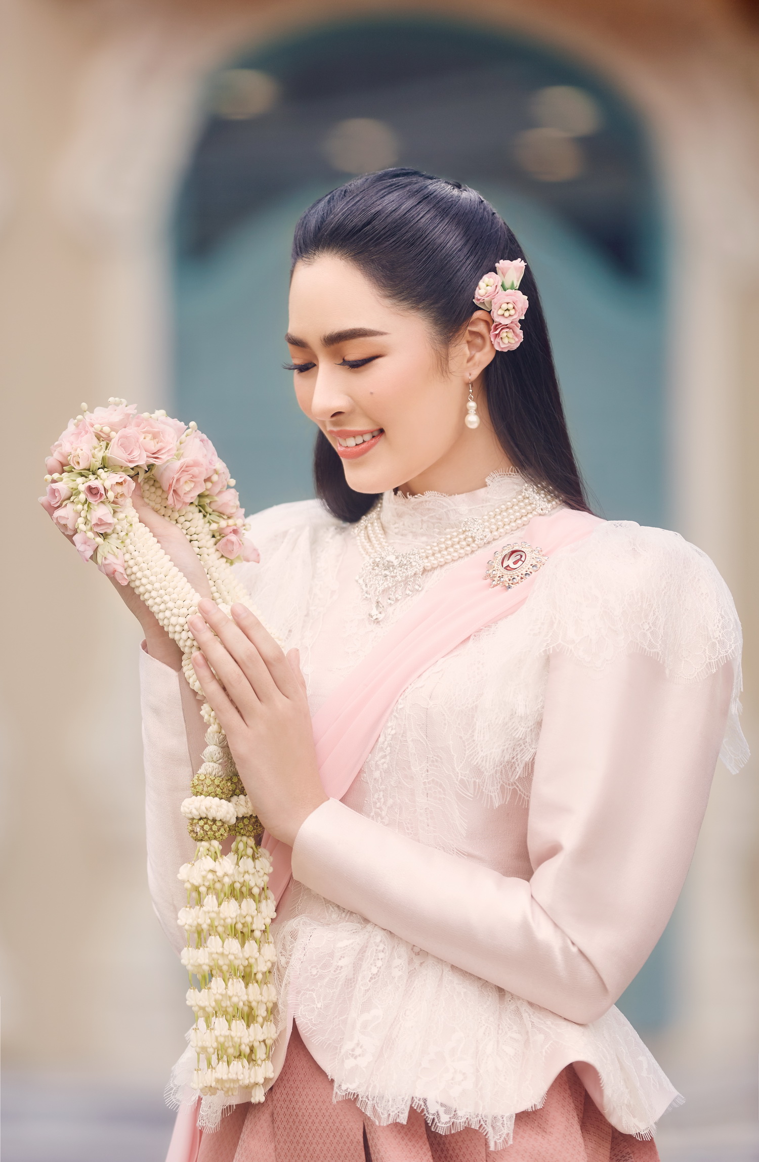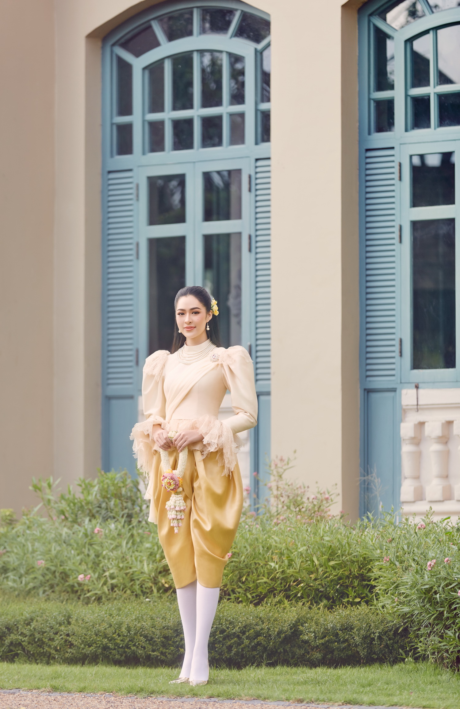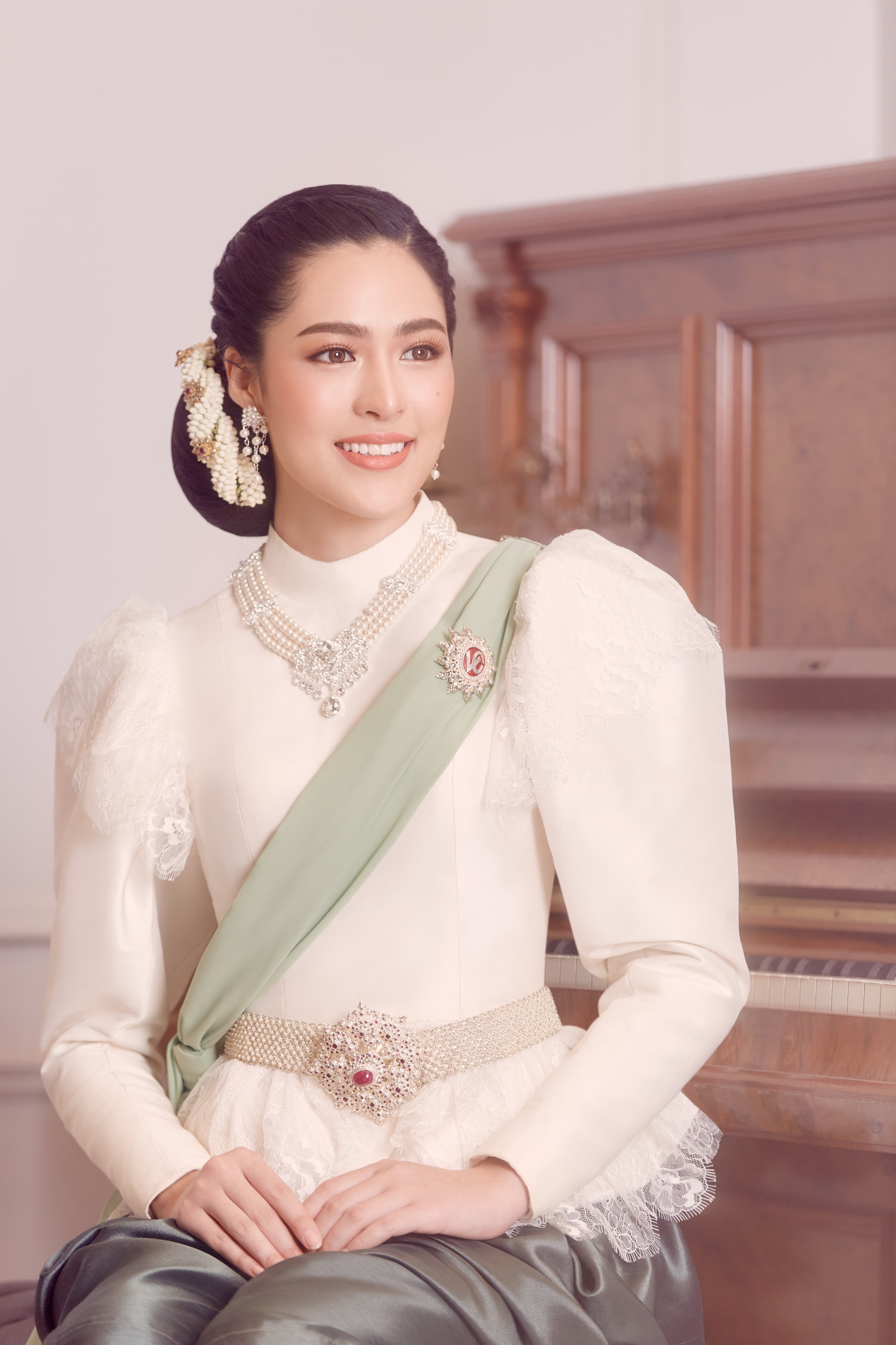 โดยคอลเลคชั่นนี้ทางห้องเสื้อได้เกิดไอเดียสร้างสรรค์ที่จะเพิ่มความแปลกใหม่ให้ชุดไทยประยุกต์มีความทันสมัยมากขึ้น แต่ยังคงความคลาสสิคเอาไว้ไม่เปลี่ยนแปลง โดยนำผ้าไหมปักธงชัย และ ผ้าไหมอินเดีย มาใช้ในการตัดเย็บ โดยดีไซน์คอเสื้อให้กว้างตามแบบฉบับนิยมของสตรียุโรปในสมัยนั้น แขนเสื้อสั้นประมาณต้นแขน มีระบายลูกไม้เป็นชั้นๆ รอบแขนเสื้อและเอวเสื้อเข้ารูปสวยงาม โจงกระเบนใช้ผ้าไหมสีพื้นในการตัดเย็บ และครั้งนี้ก็เป็นอีกครั้งที่ใช้ช่างฝีมือสุดประณีตถึง 2 แขนงด้วยกัน ทั้งไทย และ ฝรั่งเศส