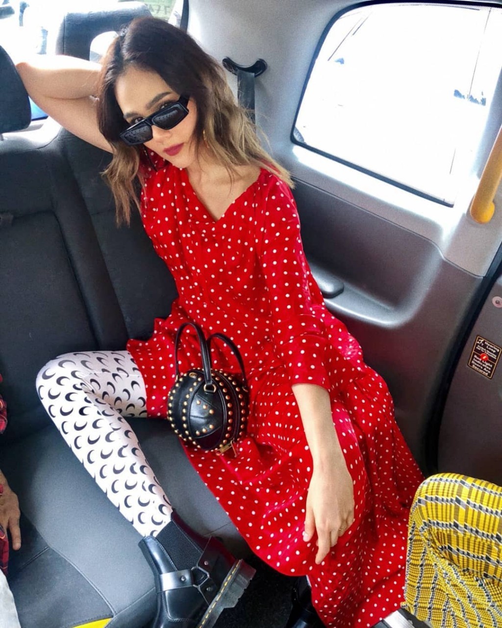 เสิร์ฟลุคแดงแรงแบบจุกๆ ชุดเบาแต่สีไม่เบานะจ๊ะ แว่นตา กระเป๋า และรองเท้า ที่สาวชมเลือก คือเสริมลุคโทนสีแดง ให้ดูร้อนแรงขั้นสุด