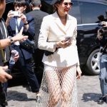 ชุดชมโชว์ Christian Dior of the Paris Fashion Week Couture Fall/Winter 2019. ในลุค ขาสั้นโชว์เรียวขา กับ เดรสตาข่ายแปลกตา สวมทับด้วยสูทขาวเรียบเท่ คาดกระเป๋า Dior สุดเก๋ บูทหนังหัวแหลม เสริมทัพความเท่ด้วยหมวกเบเร่ต์ชิคๆ และเครื่องประดับจัดเต็ม / Outfit : Dior Spring Summer 2019