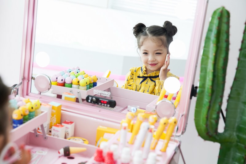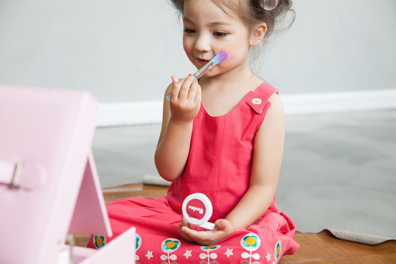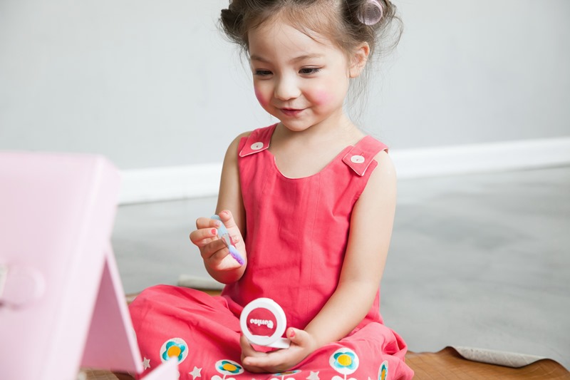 ด้านแพทย์หญิงวรรณวิภา ทองบริสุทธิ์ แพทย์ผู้เชี่ยวชาญด้านเวชสำอาง ได้เสริมถึงเรื่องพัฒนาการของเด็กและการเลือกใช้ผลิตภัณฑ์สำหรับเด็กว่า ‘เด็กในวัย 3-4 ขวบ เขาเริ่มมีพัฒนาการที่จะเลียนแบบ เริ่มอยากแต่งหน้าแต่งตัว ซึ่งผู้ปกครองควรส่งเสริมพัฒนาการในส่วนนี้ เพราะเขาจะได้มีความคิดสร้างสรรค์อย่างอิสระ และเป็นการปลูกฝังไปในตัว เราอาจจะแค่คอยเลือกของที่ปลอดภัยและไม่มีส่วนผสมของสารเคมีที่อาจก่อให้เกิดการแพ้หรือระคายเคืองต่อเด็ก อย่างถ้าเป็นเครื่องสำอางก็ควรเลือกผลิตภัณฑ์ที่มีส่วนผสมจากธรรมชาติ แต่นอกจากการเสริมสร้างทักษะด้วยของที่เหมาะสมตามช่วงวัยแล้ว ผู้ปกครองก็ควรใส่ใจในเรื่องการใช้ผลิตภัณฑ์บำรุงผิวกับเด็กด้วย ซึ่งเด็กควรเริ่มทาครีมกันแดดเมื่อต้องออกไปเจอแสงแดดแรงๆ ตั้งแต่อายุ 6 เดือนขึ้นไป แต่ต้องเป็นผลิตภัณฑ์ที่ทำมาสำหรับเด็กโดยเฉพาะ และควรเป็นครีมกันแดดชนิดที่สะท้อนแสงออกจากผิว เพราะสามารถกันแดดได้จริง และยังปลอดภัยสำหรับผิวเด็ก’