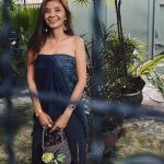 เรื่องการหยิบผ้าไทยมาใส่เนี้ย พี่ทำมาได้ประมาณ 3-4 ปีแล้วค่ะ ชอบมาก เราไม่จำเป็นต้องใช้ผ้าราคาแพง ใช้แค่ผ้าขาวม้า ผ้าปาเต๊ะ ก็สามารถนำมามิกซ์แอนด์แมทช์ให้โมเดิร์นได้แล้ว ไม่จำเป็นต้องใส่ไปงานเลี้ยงอย่างเดียว ใส่ไปเที่ยว ใส่ในชีวิตประจำวันได้หมดเลย หลักการง่ายๆ ก็คือต้องมีเครื่องประดับ และต้องออกแบบเผยให้เห็นสัดส่วนโค้งเว้าที่เหมาะสม ก็จะช่วยให้ชุดนั้นส่งให้เราดูหุ่นดีขึ้นได้ แรกๆ ที่ใส่เวลาเดินไปไหนก็มีแต่คนมอง แต่ก็ไม่ได้สนใจอะไร พี่มั่นใจ นี่คือความสุขของพี่