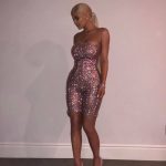 Kim Kardashian มาในชุดเดรสสายเดี่ยวสีชมพูสด ผ้ามันเงา เข้ากับ wet look ของเธอ ที่สำคัญยังเน้นให้สัดส่วนของเธอดูชัดเจนยิ่งขึ้น ถือว่าเลือกชุดมาได้ดีมาก