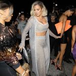 Kylie เริ่มต้นด้วยการใส่เดรสสีชมพูสดที่มีการเว้าโชว์สัดส่วน ซึ่งดูแล้วเป็นเดรสเข้ารูปที่ช่วยให้เห็นหุ่นของเธอได้ชัดเจนขึ้น ทั้งยังมีการเสริมไหล่ซึ่งช่วยให้ดูสมาร์ทขึ้นด้วย ลุคนี้ให้ความบาร์บี้กับเธอสุดๆ ด้วยผมสีทอง และหุ่นที่เป๊ะแบบนี้ แต่นี่เป็นเพียงแค่ชุดที่เธอใส่ไปดินเนอร์ก่อนปาร์ตี้จะเริ่มนะ