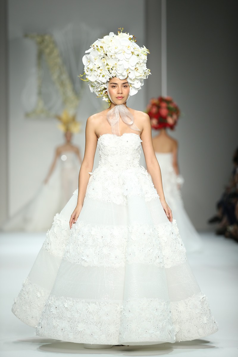 สวยหวานดุจเจ้าหญิงในเทพนิยายกับชุดแต่งงานที่เน้นการปักแบบ 3D ด้วยการปักเย็บรายละเอียดลวดลายดอกไม้ใหญ่ๆ และเท็กซ์เจอร์ให้กับชุดเจ้าสาว แบบอลังการ ซึ่งสมัยนี้จะเป็นดอกแบนๆ ไม่ได้แล้วต้องแบบพุ่งออกมาจากชุดเจ้าสาว เพิ่มความเซ็กซี่ สวยงาม ด้วยชุดแบบคอวีลึก