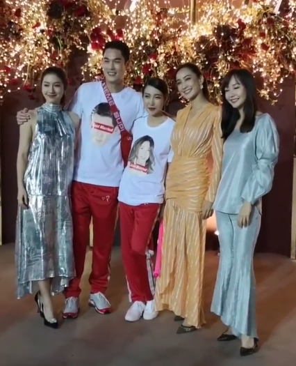 เป็นความตั้งใจของทั้งคู่อยู่แล้วว่าอยากให้งานเลี้ยงฉลองตอนเย็นนั้น มีแต่ความสนุกเป็นหลัก โดยเชิญแขกกว่า 2 พันคน และมีคอนเสิร์ตจัดเต็ม เพื่อให้พี่น้องและคนสนิททั้งในและนอกวงการ ได้สุดเหวี่ยงกันเต็มที่ และชุดที่เตรียมไว้ก็เข้ากับงานปาร์ตี้มากๆ เพราะบ่าวสาวเลือกเป็นเสื้อยืดสีขาวสกรีนลายเป็นหน้าของกันและกัน มาพร้อมกับกางเกงวอร์มสีแดง และรองเท้าผ้าใบ บอกเลยว่าคืนนี้เต้นยับแน่นอน