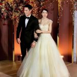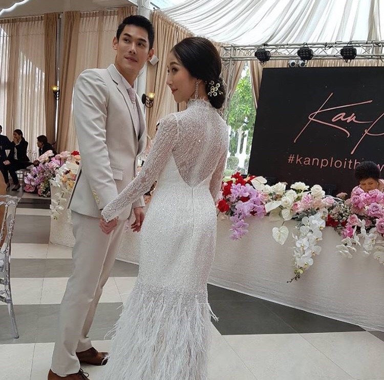 เรียกได้ว่าชุดนี้ใครเห็นเป็นต้องร้องว้าว ว่าสวยมากๆ โดยมีสีทองวิบวับเข้ามาเพิ่มความหรูหรา และขับผิวขาวๆ ของเจ้าสาวเป็นอย่างมาก ชุดนี้จากแบรนด์ Patarasiri