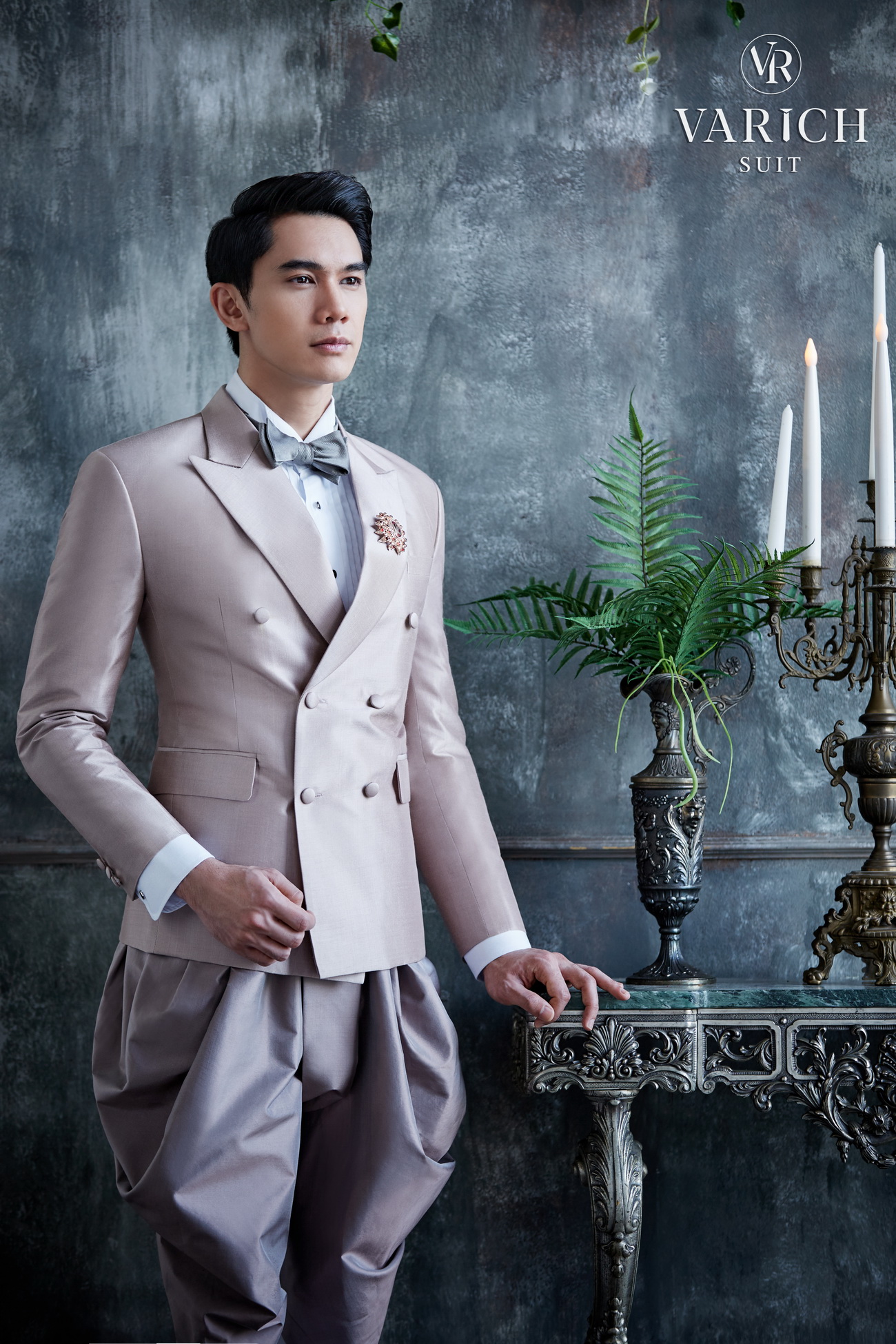 แน่นอนว่าคอลเลคชั่นนี้จัดเต็มแบบไม่มีกั๊กอีกเช่นเคย เพราะมีชุดไทยให้เลือกมากมายหลากหลายลุคตามสไตล์ของหนุ่มๆ ทั้งในแบบลุคของชุดไทยแบบท่านชายที่ดูเรียบโก้แบบในอดีต หรือลุคของคุณหลวงยุคใหม่ที่มีความทันสมัย ซึ่งเหมาะกับเจ้าบ่าวที่มีความเป็นตัวของตัวเองสูงและกล้าที่จะแตกต่าง ในสไตล์ที่ชื่นชอบในแบบของตัวเอง