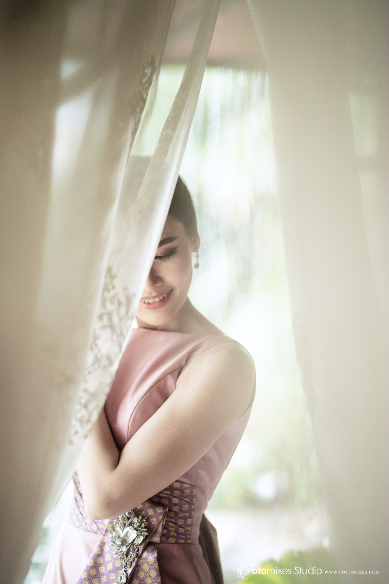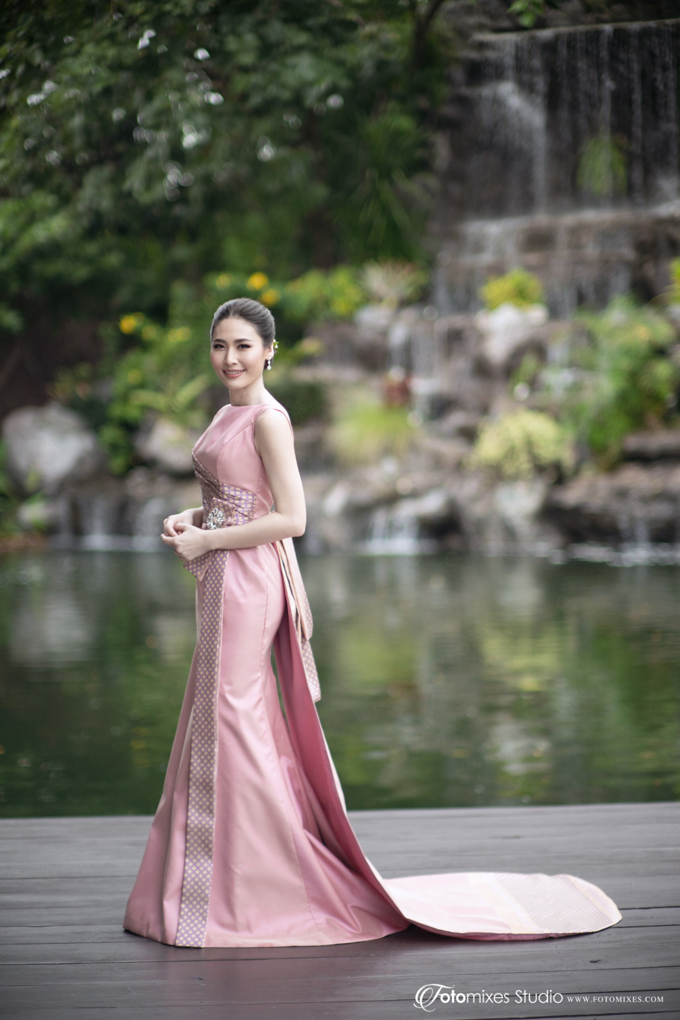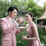 ชุดเจ้าสาวเป็นการผสมผสานความเป็นไทยและโมเดิร์นได้อย่างลงตัว ด้วยดีไซน์ทันสมัยเป็นสากล แต่ใช้ผ้าไทยที่มีความงามอยู่ในตัว จึงทำให้ชุดเจ้าสาวชุดนี้ โดดเด่นสะดุดตา