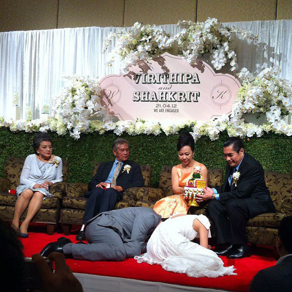 คู่บ่าวสาว ในชุดงานพิธีหมั้น