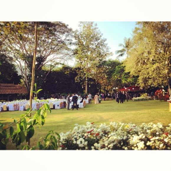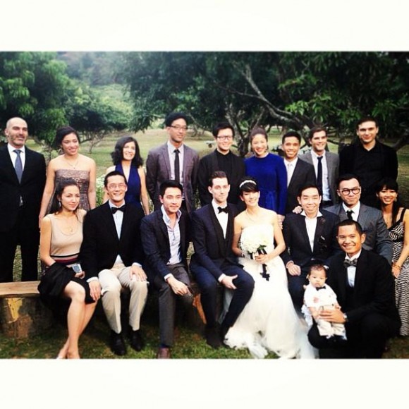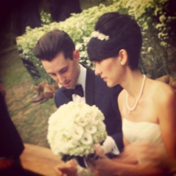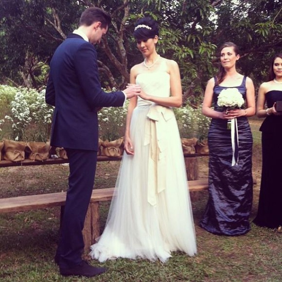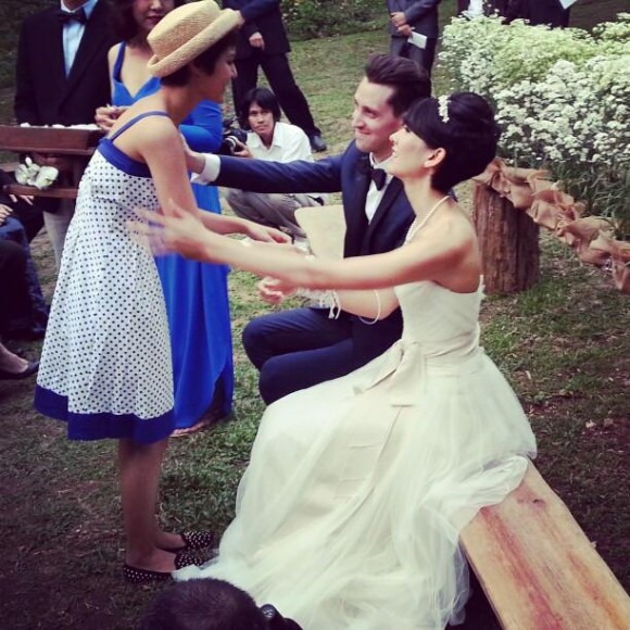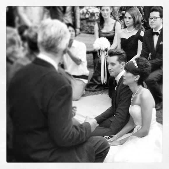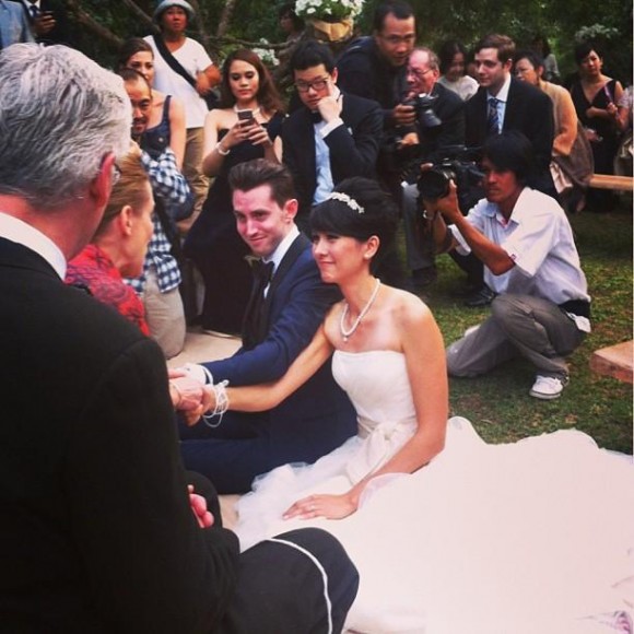 โดยในงานจัดพิธีกึ่งอเมริกัน กึ่งไทย คือมีทั้งการแลกแหวนและผูกข้อมือ