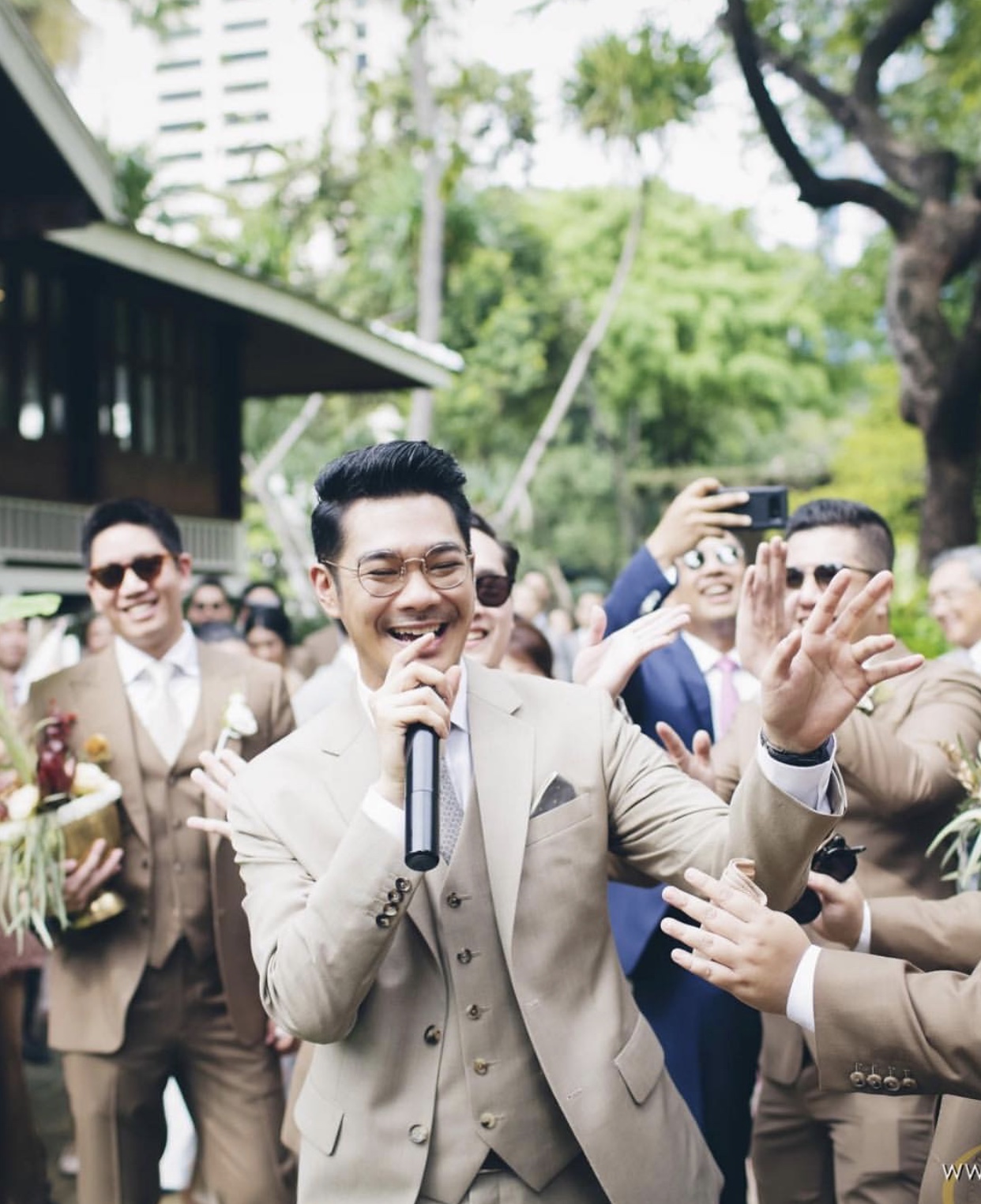 แขกที่มาในงานนี้ ส่วนใหญ่จะแต่งตัวโดยใช้สีธรรมชาติอย่างเช่นสีของเปลือกไม้ หรือ สีของดอกไม้ ซึ่งต้องยอมรับเลยว่าเข้ากับธีมงาน และทำให้ภายในงานดูมีความเป็นป่าในเทพนิยายมากขึ้น