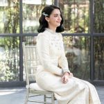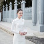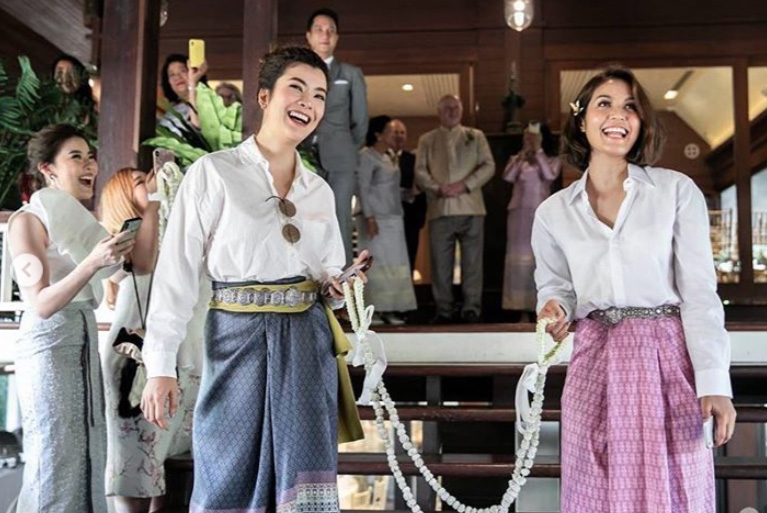 เมื่อเข้าพิธีเฉลิมฉลอง เจ้าสาวสวมชุดทรงไทยที่ใส่ลูกเล่นตรงกระโปรงเพียงเล็กน้อย ซึ่งฉีกจากเจ้าสาวหลายๆ ท่าน บอกได้คำเดียวว่าสวยสง่ามาก!