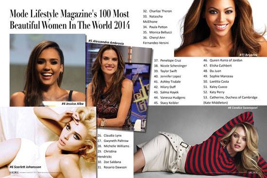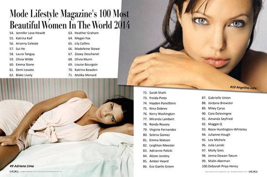 นิตยสาร Mode Lifestyle Magazine ได้ประกาศผลการจัดอันดับ 100 อันดับ ผู้หญิงสวยที่สุดในโลก ปี 2014 (World’s 100 Most Beautiful Women of 2014) โดยปีนี้ที่ 1 ตกเป็นของ นางแบบและนักแสดงชาวอเมริกัน Tania Marie Caringi วัย 28 ปี เธอเป็นลูกครึ่งอิตาเลี่ยน-อเมริกัน ที่มีใบหน้าคมเข้มและรูปร่างได้ที่สัดส่วน และอันดับอื่นๆใน 1-10 จะมีสาวคนไหนในใจบ้าง มาดูกัน!
